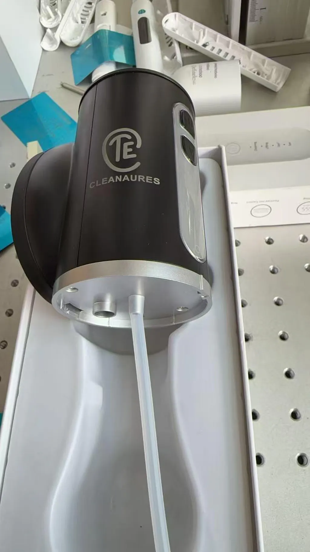Dispositif d’hygiène auriculaire à jet d’eau calibré, conçu pour un nettoyage contrôlé et non intrusif du conduit auditif.